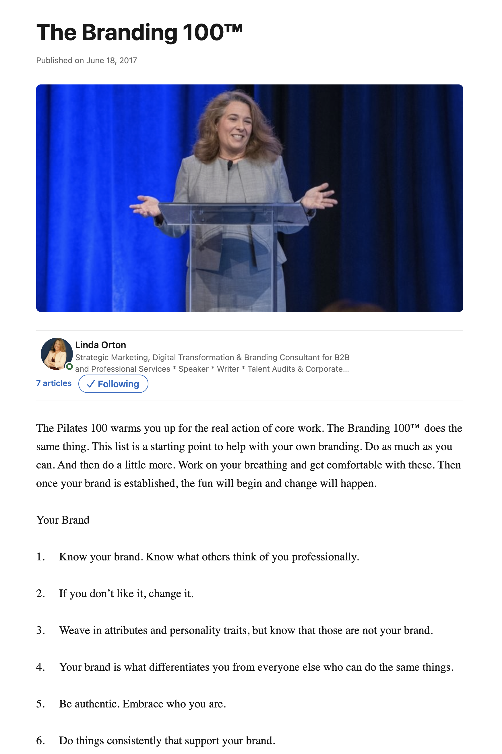 In addition to corporate branding presentations, Linda presents to both small and large groups about personal branding. She teaches professionals how to let their own passions better connect them to potential clients and recruits and how to build better relationships with current clients and team members.